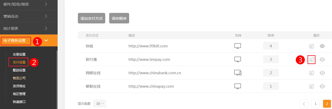 电子商务设置-配送设置